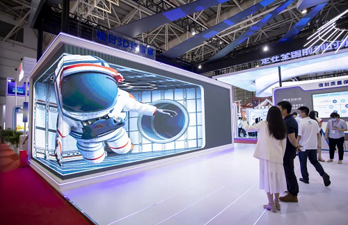 無需佩戴3D眼鏡,就能看到人物仿佛穿過屏幕來到現(xiàn)實(shí)世界,邁銳光電裸眼3D屏也引得觀展者們紛紛駐足,沉浸式享受視覺盛宴。據(jù)現(xiàn)場(chǎng)工作人員介紹,裸眼3D屏的原理是通過空間透視和混淆空間感知,利用人的左右眼視差錯(cuò)覺制造出立體感,關(guān)鍵技術(shù)是通過虛擬3D軟件將立體畫面按照一定觀看角度在兩個(gè)不同的面呈現(xiàn)出來。通過深耕LED顯示領(lǐng)域,邁銳光電持續(xù)進(jìn)行技術(shù)及產(chǎn)品創(chuàng)新,目前已運(yùn)用“技術(shù)+創(chuàng)意”的裸眼3D大屏解決方案,成功助力打造了上海美羅元宇宙、成都寬窄巷子等多個(gè)城市網(wǎng)紅地標(biāo)。
