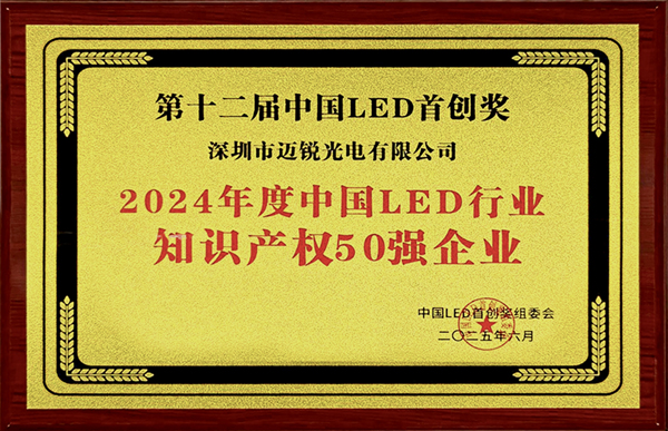 2025年6月,在第十二屆中國LED首創(chuàng)獎頒獎典禮上,福日電子成員企業(yè)邁銳光電成功入選“2024年度中國LED行業(yè)知識產(chǎn)權(quán)50強(qiáng)”,以突出技術(shù)創(chuàng)新力與知識產(chǎn)權(quán)管理能力贏得行業(yè)高度認(rèn)可。